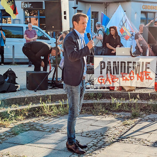 Für die musikalische Begleitung sorgte Björn Banane. Zu einer sogenannten „Gegendemo“ hatte eine „breites Bündnis“ der sogenannten Zivilgesellschaft aufgerufen. Dem Aufruf folgten aber nur wenige, vermutlich bei den einschlägigen Vereinen in Lohn und Brot stehende Personen, die sich friedlich verhielten und unsere Veranstaltung nicht störten.
