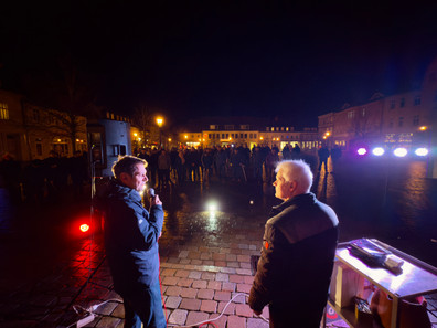 Die Montagsdemo auf dem Marktplatz in Wittstock war ein voller Erfolg. Mehr als 80 Teilnehmer versammelten sich bei winterlichen Temperaturen, um gemeinsam ein Zeichen für Demokratie und Meinungsfreiheit zu setzen. Die Veranstaltung, die von Karsten Simon hervorragend moderiert wurde, bot nicht nur politische Redebeiträge, sondern auch eine gesellige Atmosphäre mit heißem Tee und Kaffee.